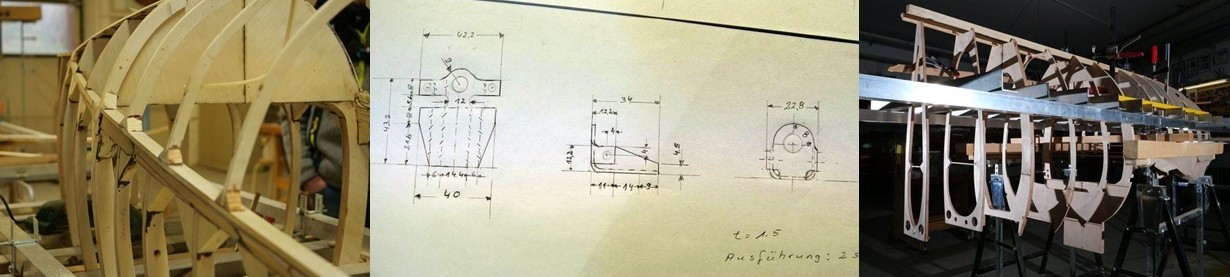 Und nun zu dem eigentlichem Thema. Bevor die Rumpfbeplankung fertig gestellt werden kann, muß die Steuerung eingebaut werden. Bevor diese eingebaut werden kann, muß sie erst einmal hergestellt werden. Die entsprechenden Zeichnungen sind da…